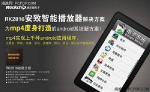 日前,國內數碼知名品牌台電科技宣布即將推出全新的智慧型播放器產品。據稱,這款新型的智慧型播放器將採用瑞芯微最新推出的RK2816方案。RK2816智慧型播放器方案,即將攜多款新品清新上市。RK2816採用Android作業系統,全觸摸操作,完全支持上千種android應用程式,包括主題包、體育、動漫、資訊、多媒體、娛樂、辦公、旅行及數量豐富的G-Sensor遊戲,同時,亦可支持全格式720P視頻播放,各種字幕顯示以及HDMI高清輸出,實現了娛樂與智慧型的完善融合。