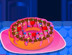 遊戲中使用滑鼠操作,點擊食材製作甜甜圈。