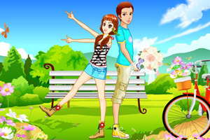 滑鼠拖動衣物給情侶換裝。