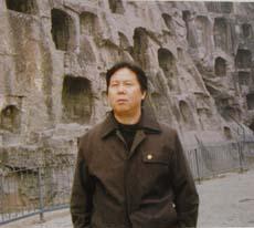 1993年底參加河南省美術作品展獲獎的《中原雄姿》這幅畫,反映出來的情感是那么廣博。畫面中的雄鷹,可以視為在中原大地上眾志成城的英雄們,三隻鷹是奇數,寓有眾多之意,而那兩縮一放的形象,既符合哲學的矛盾對立統一觀,又使人感覺到那深厚的蘊力。在那典型的中原黃土上,紅色的山巔與蒼黑的雄鷹形成強烈的對比,給人一種雄渾,一種古樸,一種厚重感。以寓意和象徵的手法,追求一種蒼勁雄奇的力量感,一種任何力量也不可戰勝的精神,這不正是我中華民族的精神么?在那色與墨、白與黑、濃與淡、形與神、線與面的對比中,整個一幅畫形成一種外張力,流露出一種元渾之氣,表現出中土文化的本質精神,這也是博庵的藝術追求。