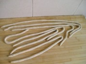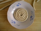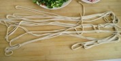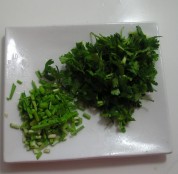 蒜苗適量 6全部盤好面,蒙上保鮮膜備用。 8將香菜和蒜苗分別切碎備用。