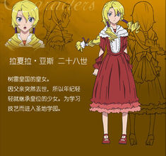 拉夏拉·亞斯二十八世 | 拉夏拉·亞斯二十八世(CV:米澤圓) 12歲,但思想和性格遠不止這個年齡。本作女主角,斯特雷尤王國的女王。因父親突然去世,所以年紀輕輕就繼承皇位的少女。繼承父母的才智擁有遠超過實際年紀的思想,作為智囊一般的存在在OVA第10集終於因為劍士的所有權的爭奪而露出作為一名少女應有的脆弱,在白鳥國成立之後成為劍士名副其實的智囊。為學習技藝而進入聖地學園。對錢的方面有著超乎想像的執著。 |