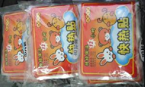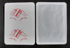 該品為片狀貼劑,是由原料層、明膠層、無紡布袋三部分組成的,標準尺寸:約13.5×10cm,原料層置於無紡布袋內,明膠層用於使一貼熱粘附在衣服上。原料層是由鐵粉、石、活性炭、無機鹽、水等合成的聚合物,無毒、無副作用,可在空氣中氧氣的作用下發生放熱反應。無紡布袋的特點是均勻不漏、透氣性好。明膠層選用日本特有的優質壓敏膠塗層,粘結牢固,絕不污損衣物。