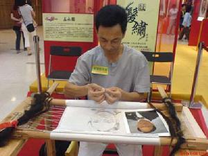 發繡,運用頭髮繡制的繡品。頭髮具有特殊性能,堅韌光滑,色澤經久不褪。發繡以發代線,利用頭髮黑、白,灰、黃和棕的自然色澤,以及細、柔、光、滑的特性,用接針、切針、纏針和滾針等不同針法刺繡。發繡白地黑線,適宜繡制摹線(白描)人物,山水和建築物等,人物一般背景較少。以質樸素淨取勝,繡品針跡細密,色彩柔和,風格獨特。其高超的技藝水平和不朽的藝術價值,充分體現了漢族勞動人民的卓越才能和和藝術創造力。