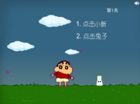 關卡2:點擊小丸子,點擊小新,點擊白兔;