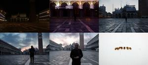 實施過程:在威尼斯聖馬可廣場,從聖馬可教堂大門口到對面反覆徘徊。手中7顆中國麥粒寫著:在這裡我很孤獨,往復行走中不斷撫摸這些種子,最後灑落在異域空寂的廣場。