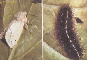 發生規律 :人紋污燈蛾一年發生2--6代,以蛹越冬,中國北方第1代成蟲5月羽化,第2代成蟲7--8月羽化。八點灰燈蛾以幼蟲越冬,第1代成蟲於翌年2月羽化,3月上旬產卵,第2代於5月中旬羽化。每雌可產卵400粒左右,初孵幼蟲群棲於葉背面,食害葉肉,3齡以後分散為害。