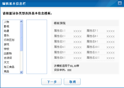 編輯詞條時,可依照詞條類型選擇使用不同的基本信息欄。
