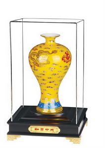 皇家禮瓷黃釉瓷器以其靚麗的色彩、特殊的象徵意義,而具有獨特的藝術價值,並且已經逐漸為越來越多的人所推崇。正以其獨有的藝術價值和升值潛力開始逐漸受到藏家關注,黃釉瓷的市場空間非常大,在近幾年的藝術品市場中,黃釉瓷器價格始終不菲,價格年年上漲,投資前景十分可觀。清三代黃釉瓷更是高價迭出,如2004年12月上海信仁曾以89萬元拍出一對康熙黃釉淺浮雕海水龍紋杯;同年北京華辰秋拍的一件清雍正檸檬黃釉蓮形大盤以286萬元拍出,成為當年國內藝術品市場中成交價最高的單色釉瓷器;隨後在2005年北京華辰春拍中的一對乾隆黃釉盤以132萬元成交,這些拍賣紀錄已成為對黃釉瓷器藝術價值的新的肯定,。