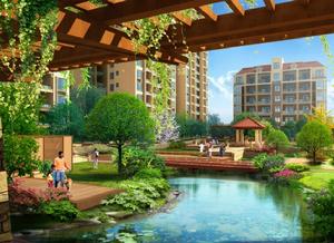 1、塞納陽光:景觀以星級游泳池為中心,向四周輻射,配以喬木、灌木、小品等,整體設計大氣、飽滿、有層次感;