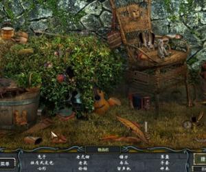 向左走,來到樹林前,完成找物後得到提燈。左下角工具箱中得到把手。乾草堆里有東西,不過需要道具。正中有個奇怪的裝置。從右側拿到掃帚,打掃花壇,把花壇恢復原樣得到馬蹄鐵。把馬蹄鐵放在奇怪的裝置左側架子上,木柴放入中間,調整右側的按鈕,製成磁鐵。