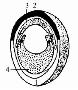 神經胚神經胚(neurula)脊索動物早期胚胎髮育中繼原腸胚後的重要發育階段。開始於神經板的形成,終止於神經管的合攏。脊索是胚胎早期縱貫胚體的中軸,誘導其上方(背方)未分化外胚層細胞轉變為中樞神經系統原基。首先,脊索上方的背部外胚層細胞伸長加厚,形成前寬後窄的神經板;神經板邊緣加厚起褶形成神經褶;神經板中央下凹形成神經溝。隨後,神經褶向背中線移動,最後合攏形成神經管。神經管是腦和脊髓的原基。脊索和神經管構成胚體的中軸,對早期胚胎體形建立具有重要意義。此時頭和尾部、背面和腹面以及左右兩側相應空位,胚胎體形基本形成。在神經外胚層兩側的外胚層細胞索隨神經管形成下移,沿背中線兩側分節位於神經管與表面外胚層細胞間,稱為神經嵴細胞,以後發育成周圍神經系統的神經節、腎上腺髓質等。在神經胚期,中胚層分化為三部分,在脊索兩側中胚層(上段中胚層)稱副軸中胚層,增厚分節成為體節;外側腹部薄層中胚層(下段中胚層)稱為側板中胚層,它又分裂為二層:外層位於外胚層下方,稱體壁中胚層;內層圍於內胚層周圍,稱髒壁中胚層,二層間的腔為體腔。連線體節與側板中胚層的中段中胚層,稱間介中胚層,主要形成生腎節。