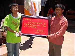 捐助2005年8月,喜訊再次傳進祥雲四中校園。該校2005屆理工類考生彭智利以667分被中國科學技術大學錄取,文史類考生宋衛國以628分被北京師範大學錄取。這兩名學生在學校學習期間,學校一直給予資助。現在他們考起了理想的大學,在激動之餘,很快又陷入了憂愁中,到哪兒去籌措高額學費呢?正在他們一籌莫展之際,學校又向他們伸出了援助之手,給他們每人獎勵助學金5000元,學校領導到兩個學生家裡,親手給他們送上了助學金。兩位學生及其家長激動不已,他們說學校不僅在校給予資助,現在上大學了,又收到學校的助學金,真是雪中送炭。