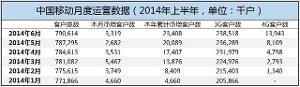 2014年7月21日,中國移動發布了六月份運營數據。當月中國移動新增客戶數331.9萬戶,客戶總數累計達7.90614億戶。其中,3G用戶淨增222.9萬戶,3G客戶總數達2.38518億戶;4G用戶淨增583.4萬戶,總數達1394.3萬戶。對整個上半年的數據做對比會發現,6月份中國移動在總用戶淨增長方面好於5月,但仍然低於1月至4月的表現。在3G用戶增長方面,6月數據創下上半年新低。在4G用戶增長方面,6月則創下上半年的新高。