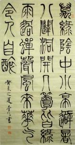 對穆奎信的第一點印象,是他敦實憨厚的外貌和篆刻家特有的氣質。面對他,你不僅僅能感受到他對篆刻的認真與深情,更能感受到這位篆刻家不斷創新的欲望。三有堂是穆奎信給自己工作室取的名字。其實只是十幾平方米,採光不太好的一個斗室而已。不過,這斗室里一幀幀篆刻作品,一枚枚印章,還有刻刀、畫筆、印泥、宣紙、棕刷、硯墨……甚至於一桌一椅似乎也都沾滿了靈氣。走進了三有堂,也就走進了穆奎信營造的精神家園,走進了熔書法與金石為一爐的篆刻藝術世界裡了。