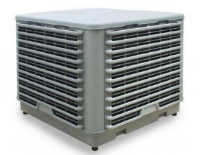 空調用循環水泵不間斷地把水箱內的水抽出,並通過布水系統均勻地噴淋在蒸發過濾層上,室外熱空氣進入蒸發降溫介質,在蒸發降溫介質CELdek(特殊材質的蜂窩狀過濾層,讓降溫效果更理想,瑞典的高科技專利產品)內與水充分進行熱量交換,因水蒸發吸熱而降溫的清涼、潔淨的空氣由低噪音風機加壓送入室內,使室內的熱空氣排到室外,從而達到室內降溫的目的。