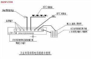 在進行衛生間內局部等電位聯結時,應將金屬給排水管、金屬浴盆、金屬採暖管和地面鋼筋網通過等電位聯結線在局部等電位聯結端子板處連線在一起,當牆為混凝土牆時,牆內鋼筋網也宜與等電位聯結線連通;金屬地漏、扶手、浴巾架、肥皂盒等孤立之物可不作連線。局部等電位聯結端子板應採取螺栓連線,設定在方便檢測的位置,以便拆卸進行定期檢測;等電位聯結線採用BVR—l X 4平方毫米導線在地面內和牆內穿塑膠管暗敷,等電位聯結線及端子板宜採用銅質材料,是因為其導電性和強度都比較好。