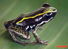 箭毒蛙圖片(3)箭毒蛙體型小,通常長僅1~5公分(0.5~2寸),但非常顯眼,顏色為黑與艷紅、黃、橙、粉紅、綠、藍的結合。棲居地面或靠近地面,全部屬於毒蛙科(Dendrobatidae),但並非所有170種都有毒。箭毒蛙具有某些最強的毒素。這種兩棲類身體各處散布的毒腺會產生一些影響神經系統的生物鹼。