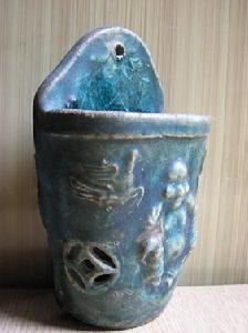 “筷子”是“箸”的方言,因為漢語古籍里沒有“筷子”而只有“箸”,現在一般都稱“筷子”。筷子是我們祖先發明的,至今已有三千多年的歷史了。有筷子便有箸筒,古時候的箸筒未見實物,不便多言。清代和民國時代的箸筒一般有兩種,一是上寬下窄的圓筒形,二為一邊弧形一邊平面的半圓形;二者筒底都鑽有幾個小孔,供滴水通風之用。這些箸筒適應不同的擺放環境,有壁掛的,也有吊掛或擺放的。箸筒初看和壁瓶大同小異,但兩者最大的區別在於箸筒底部有數隻小孔,便於筷子洗後入筒可以滴水。而壁瓶用於插花、插撣帚,底部不能有孔洞。那時候的箸筒富有文化氣息,模印著吉祥富貴的圖案和文字,表達了人們對美好生活的嚮往,這也是東方文明的組成部分,是我們今天研究民俗文化的重要證物。〖武越〗