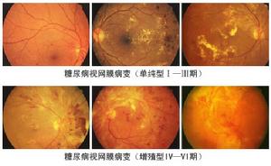 1、我國眼底病學組於1984年參考國外分期標準制訂了我國的“糖尿病視網膜病變分期標準 ”。分為單純型和增殖型,共六期。