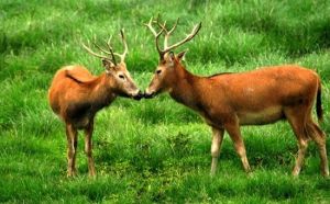 糜鹿喜水,善遊戲、跋涉。因麋鹿角似鹿非鹿,頭似馬非馬,身似驢非驢,蹄似牛非牛,得四不像之名。原產於中國長江中下游沼澤地帶,以青草和水草為食物,有時到海中銜食海藻。體長達兩米,重300千克。曾經廣布於東亞地區。後來由於自然氣候變化和人為因素,在漢朝末年就近乎絕種。