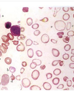 顯畸形的叫畸形紅細胞(poiki-locyte)。在畸形紅細胞里有有棘紅細胞(burrce-ll,acanthocyte)該紅細胞表面有針尖狀突起,其間距不規則。突起的長度和寬度右不一、口形紅細胞(stomatocyte)紅細胞中央有裂縫,中心蒼白區呈扁平狀,頗似張開的口形或魚口。以及星狀紅細胞(starcell,astro-cyte)等。