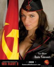 紅色警戒3[EA美國藝電發行遊戲] | 俄國情報官達夏·費多洛維齊(Dasha Fedorovich) 伊萬娜·米利塞維奇 ( Ivana Milicevic ) 飾演 人物簡介:紅髮壞女人,似乎懂得操作卡拉什尼科夫槍。她很少露出笑容,或是表露情緒,但是在那冷酷能幹的外表下,確有著滿腔沸騰的熱情。她負責傳達俄軍的情資與戰鬥計畫。 |