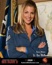 紅色警戒3[EA美國藝電發行遊戲] | 盟軍情報官伊娃·麥肯娜(Eva Mc Kenna) 傑瑪·阿特金森 ( Gemma Atkinson )飾演 人物簡介:負責代表盟國聯軍領袖傳達任務情資的美國軍官。她對指揮官相當傾心,並給予大力支持,但認為譚雅是個婊子。極富魅力,但不輕易表露內心情感。她保守且直率,熱衷於盟軍的一切作為。她是個好女孩,似乎有調皮的一面,前提是你得先讓她卸下心防。 |