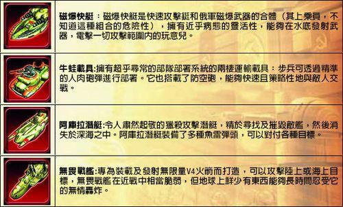 紅色警戒3[EA美國藝電發行遊戲]| 船隻 | 牛蛙載具 | 磁暴快艇 | 阿庫拉潛艇 | 無畏戰艦 |