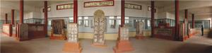 紅軍文化園在建築形式上,以“省級文保單位——川陝蘇區紅軍石刻標語碑林”為核心,以紅四方面軍運用石刻標語這種獨特的手段同國民黨反動派打宣傳戰,喚醒教育民眾推翻舊世界,建立新中國為主題,採用仿川北民居的現代園林建築式樣,以山門標誌、廣場、大門、主體雕塑、主展室、副展室與廊亭結合的構建方式,形成中軸對稱,高低借落,迂迴曲拆的總體建築風貌,將現存的紅軍石刻標語和其它紅軍遺存陳列於園內,使人文景觀融入自然環境之中.