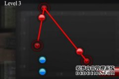 滑鼠控制操作,拖動紅色線頭的兩端,在規定的時間內讓螢幕中的藍色小圓點都能被線穿起來,變成紅色的小圓球。點“proceed”進入下一關。