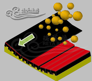 它套用優良的高彈性特種橡膠層充分有效吸收了物料下落時的衝擊力,大大降低了物料下落時對輸送帶的衝擊,真正的改善了落料點的受力狀況。並採用特殊的UHMW高分子聚乙烯表面,使輸送帶與緩衝條之間的摩擦係數降到最低,且耐磨性好。緩衝條的使用保證了輸送帶的面與面的接觸,受力均勻,有效防止了由於托輥斷裂、脫落造成的皮帶縱向撕裂,同時大大降低了皮帶被銳器或尖銳物料穿透後縱向撕裂的機率