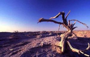 至今變成了一片死寂的荒漠,胡楊林成片死亡,寸草不生,不見飛鳥,令人恐怖。