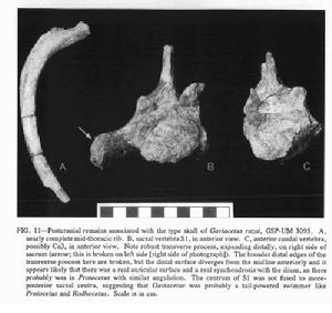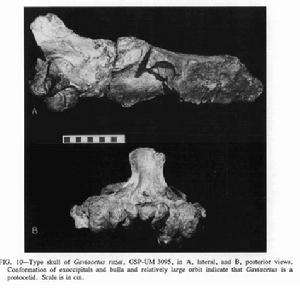 於羅德候的早路德期發現了原鯨類較完整的有鉸接骨骼 , 該化石是屬於羅德候鯨屬Rodhocetus kasranii , Rodhocetus kasranii骶骨則仍保留了和椎骨側突pleurapophyses相連 , 椎體間也沒有熔合。於晚路德期發現的喬丹斯鯨Qaisracetus arij仍保留了一些骶骨間的熔合但其他骶椎間沒有專門的連線 , 但這於鯨類進化方面還是很不明確的。兩者的頸椎較陸上動物的要短但要較後來的水生哺乳類的要長 , 它們的前胸椎稍微增長 ,神經棘的長度增長要較肩胛骨的明顯 。喬丹斯鯨Qaisracetus arij較後的前尾椎延長 , 羅德候鯨屬的Rodhocetus kasranii較後的前尾椎則變短 , 兩者腰骶部分有弓形脊柱。陸上勛物如狼都有類似的骨骼比例包括前胸椎及腰骶弓的神經棘高度 , 因此喬丹斯鯨Qaisracetus arij及Rodhocetus kasranii的骨骼結構可顯示它們能於陸上移動,但由於沒有肢體發現 , 因此這論據還是言之過早。原鯨類中的喬丹斯鯨Qaisracetus arij約重620 kg , 羅德候鯨屬的Rodhocetus kasranii則重約590 kg。於古鯨亞目中 ,加伏特鯨屬Gaviacetus及原鯨屬Protocetus保留了第一骶骨S1 ,可能是源於羅德候鯨屬或喬丹斯鯨屬Qaisracetu的骶骨上的公式 , 但這於後來的古鯨亞目中的喬治亞鯨Georgiacetus,硬齒鯨及龍王鯨等也喪失了。