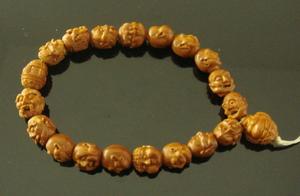 八羅漢”。該作品是由十八個果核雕刻而成。每個雕刻過的果核打孔穿在一起。耿睦森說這是奶奶苗大環生前一直把玩的一個物件。作品非常類似於右邊的圖片所示。苗大環1960年去世後該物件由耿睦森保管。由於耿睦森家庭生活較為拮据,1964年以八元的價格賣給了北京崇文門附近的一家信託商店。耿睦森回憶這一段歷史時說:“帶著這個物件,來到崇文門一家信託商行,店員說按規定需要出示戶口本。於是又回了一趟家,最後憑戶口本將祖傳的這件物品賣掉了。換來的八元錢給幾個孩子交學雜費了。”祖傳的十八羅漢就此流失民間。