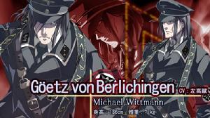 1914 年 4 月 22 日生。騎士團幹部,在團中除雙首領外,能力拔群之最強實力者。元隸屬於武裝親衛隊第一裝甲師團阿道夫希特勒親衛聯隊,官拜上尉。在騎士團中,名目上死亡者不為少數,但僅此一人真的死過一次。是以連同胞皆畏懼之,視之為亡靈、受詛咒者。在經驗死亡之際失去了本名,Berlichingen 不過是其稱號。雖然數名親近者以 Machina 稱之,卻似乎亦非本名。現在,在61年前柏林淪陷之時消蹤匿跡,至今行蹤不明。副首領將於蠱毒戰中勝出之不死英靈米歇爾·魏特曼 之魂封入虎式VI號戰車中,並將之煉為鋼鐵人形,填補具左右劇情走向之黑圓桌第七位天秤宮之闕位。鋼鐵之軀即是其聖遺物機械仕掛之神“機神.鋼化英雄”。