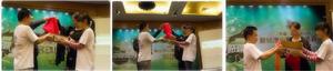 三種顏色的祥雲圖案代表公司的三大版塊: