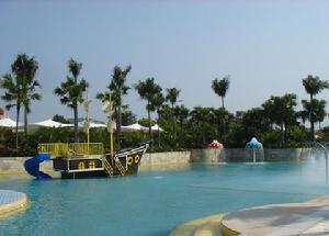 獨具東南亞園林風格的露天溫泉區,擁有目前全國規模最大的2500 平方米的人造海浪常溫池,近四十餘個特色各異的溫泉池錯落有致分布在綠樹林蔭之中。僅 1 0° C 的冰泉、暗藏洞天的人造溶池、飄香四溢的玫瑰池、晶瑩剔透的水晶宮、各種功效的藥浴池、特殊療效的天然石板溫泉熱炕……