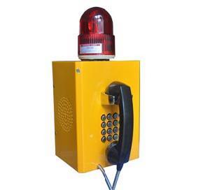 工業聲光報警電話機用於礦山、隧道、鋼鐵廠車間、選煤廠、電廠機房、水利水電調度、船舶、港口、電廠、等噪聲特別大的環境惡劣場所。話機配置有揚聲器以及報警燈,當有來電時揚聲器先將來電鈴聲放大發出同時報警燈會閃爍提醒,當振鈴次數達到設定要求時電話機會自動接通主叫方通過揚聲器實現廣播喊話功能。工業聲光報警電話機除了聲光報警以外本身還附有防水防塵的功能。
