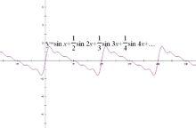 純音的函式模型是 y=Asin ω x. 我們聽到的聲音的函式是 y=sin x+1/2 *sin 2 x+1/3*sin 3 x+1/4*sin 4 x+…