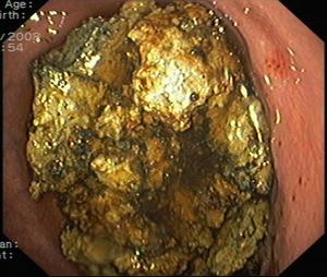 纖維內鏡檢查可在直視下觀察到胃石的大小、形狀和性質,並可將植物性胃石搗碎,以利排出,達到治療的目的。