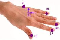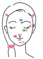 EB=Beginning of the eyebrow,SE=Side of the Eye,UE=Under the Eye,UN=Under the Nose,CH=Chin,(CB=Beginning of the CollarBone,UA=Under the Arm,BN=Below the Nipple)TH=Thumb,IF=Index Finger,MF=Middle Finger,BF=Baby Finger,KC=karate Chop