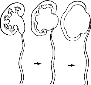脹大的腎積水較易受到外傷的影響,輕微損傷即可能引起破裂和出血。尿液流入腹膜後間隙或腹膜腔即引起嚴重反應,包括疼痛、壓痛和全身症狀。