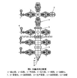 井口裝置包括套管頭、油管頭、採油樹三個部分,即有懸掛密封部分、調節控制部分和附屬檔案組成,其基本連線方式有螺紋式、法蘭式和卡箍式三種。如圖1