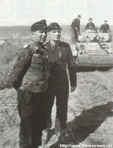庫爾斯克戰役中留影,左為舒爾茨“中校閣下,請快醒醒!”有人拚命地搖晃著舒爾茨的肩膀,中校艱難的扒開眼皮。副官羅德中尉的面龐出現在他眼前。“乾什麼!”舒爾茨不滿地問道,他抬起手錶-塗有螢光劑的指針正標明凌晨二時十九分,兩天來他只睡了這么三個小時。