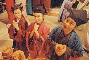 劇照2:高志森要在四個小時內拍完那場有十個演員雲集演出的壓軸戲,但是拍攝當天早上烏雲密布,還下起雨來,可是到了下午,演員們通通到齊之際,天空居然大放光明,天公造美,半滴雨水也沒有。