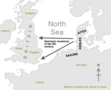 日耳曼人入侵後,統治了當地的凱爾特語民族。本地語言主要於蘇格蘭、威爾斯、康瓦耳與愛爾蘭存活了下來。這些入侵者的語言逐漸形成了“古英語”(盎格魯撒克遜語),與古弗里西語極為相像。English(英格蘭人、英語)、England(英格蘭)和East Anglia(東盎格利亞)這三個詞是分別從描繪盎格魯族的辭彙發展而來:Englisc、 Angelcynn、Englaland。
