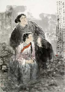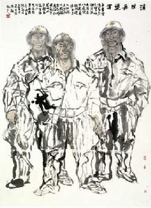 他的人物畫起點高,牢牢紮根於現實的土壤,一洗甜、嬌、媚俗的市民趣味,把現代人古代人作為歷史長鏈中相連結的兩環去看待。臉部都畫得較長,有所誇張,縱橫交錯的皺紋里,跳動著悲喜人生的音符。追求故鄉嶙峋多姿的岩石般的堅實、多變、沉默。富於承擔精神考驗的能力,一面在淨化舊我,一面又是云云眾生像你我他一樣平平常常,化奇倔為可信。他筆下的古今知識你們份子,皆有思想者的傾向,民族憂患與對美好明天的執著自信交織一起,他具橡皮筋的特徵:無論怎么扭曲也不脆不折,只要扭曲的力量一消失,中華民族固有美德,革命隊伍里忘我為父老姐妹服務的虔誠,依我從常態里閃耀出來。顯然,這類線條的交響,出於對民族文化的摯愛,久久的潛移默化,畫魂與藝術品格的統一。