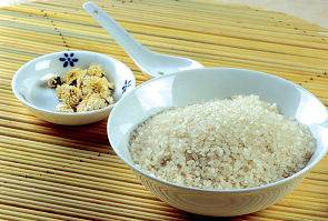 2.將冼淨的圓糯米倒入煮黃菊花的水中,繼續煮50分鐘後,加冰糖調味即可。