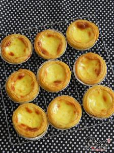 ,徹底攪拌均勻; 4、蛋黃打散成蛋液,混合到奶液里拌勻做成撻水; 5、把做好的撻水倒入撻皮里,裝到7分滿; 6、烤箱預熱220度,烤...